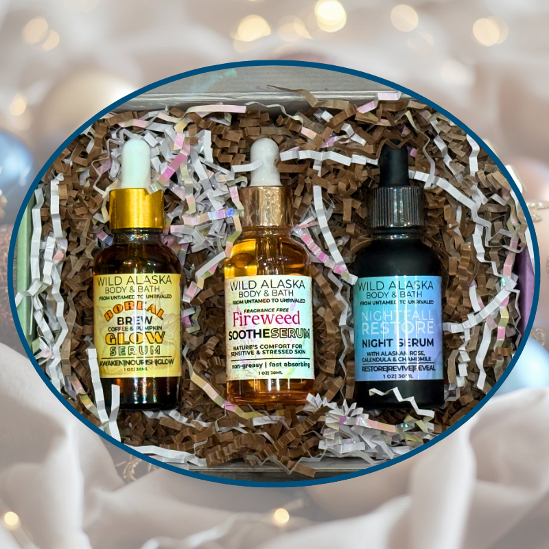 This holiday season, give them gift sets they'll love using all winter. Our handcrafted natural skincare gift sets deliver glacier silt for deep exfoliation and absorption, wild-harvested botanicals that restore barrier strength, and formulas gentle enough for sensitive skin but powerful enough to actually work. Each set is a small-batch, limited-edition collection crafted with seasonally rotating scents and products. Give a gift that shows you care about what goes ON their skin. No junk. Just natural, effective skincare. Once they're gone, they're gone.