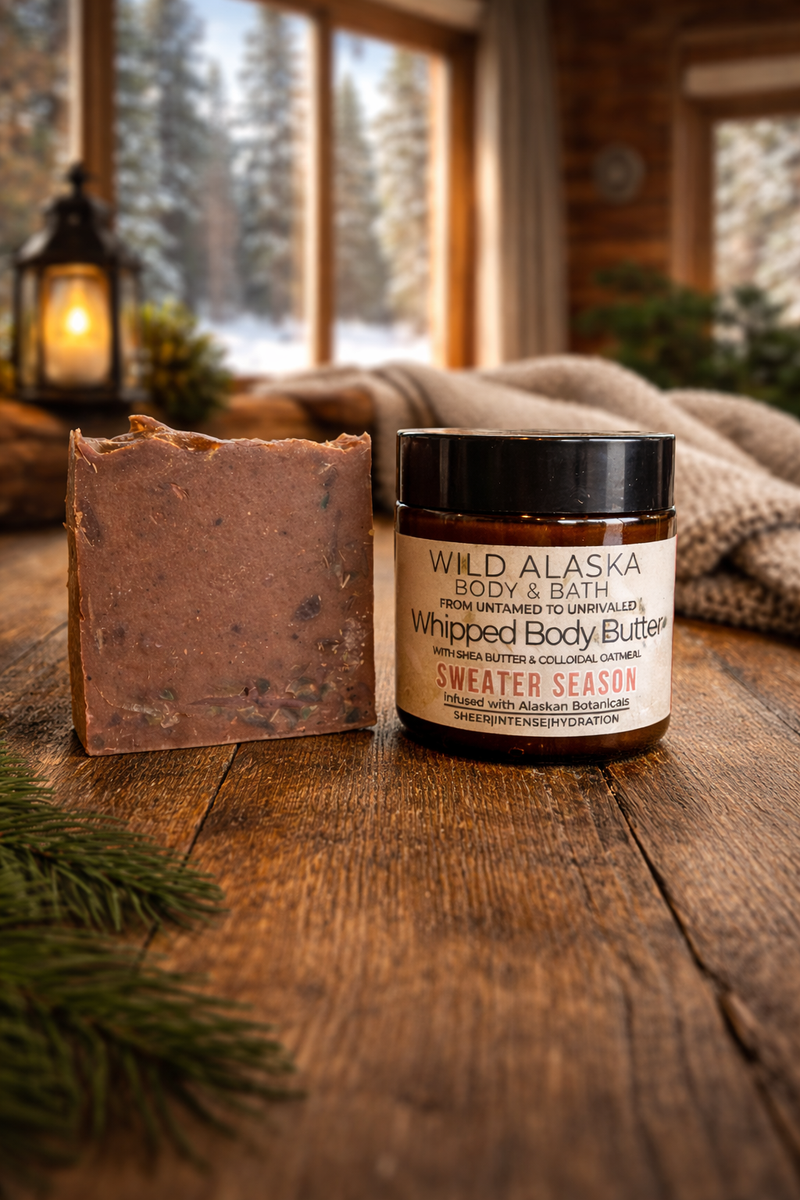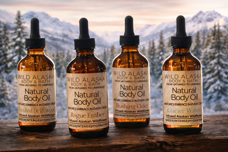 Our body butters and oils are crafted in small batches on Alaska’s Kenai Peninsula using thoughtfully sourced oils and butters, paired with select botanicals and skin-supporting ingredients chosen for balance and performance.
